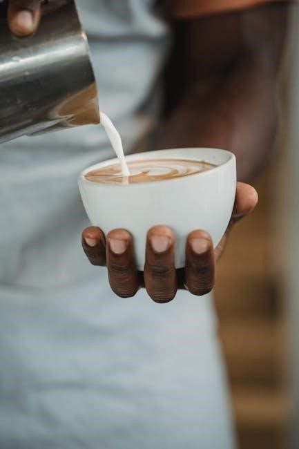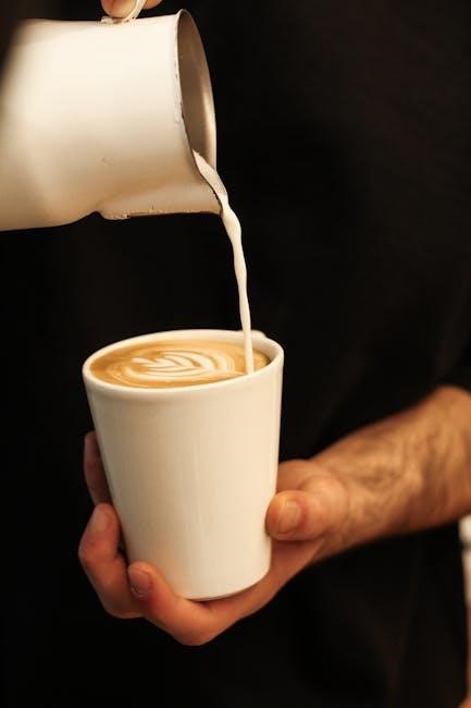 Adjusting Technique: Experiment with wand positioning and frothing duration to fine-tune the foam texture․ Practice makes perfect! Observe the milk’s volume increase and bubble size to understand how adjustments impact the final result․ Remember to purge the wand after each use․